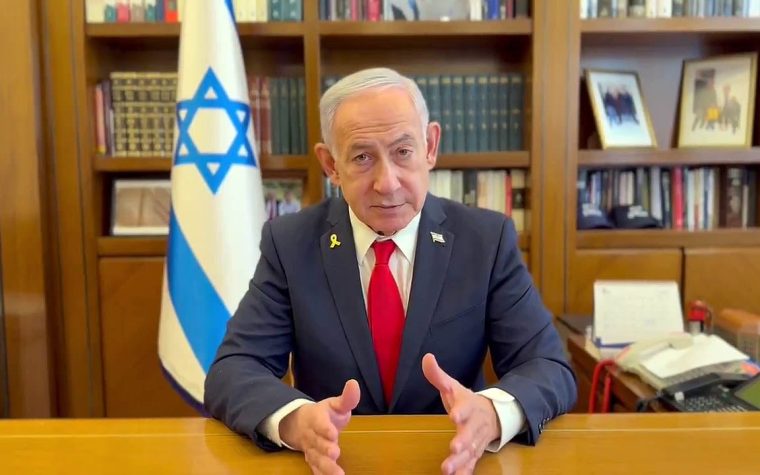 Prime Minister Benjamin Netanyahu delivers a pre-recorded message from his office in Jerusalem on July 29, 2025. (Screen capture/PMO)
