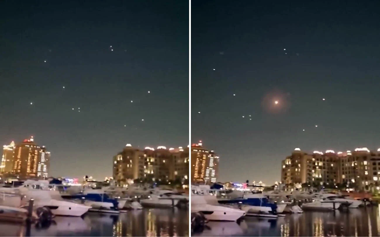 以下はカタール上空に飛来し、迎撃されるイランのミサイルの様子。ドーハで逃げる人々の様子。