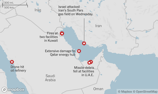 イスラエル軍は、テヘランやイラン国内の政権、IRGC関係地点への空爆を続ける中、3月18日(水)、イラン南部、ペルシャ湾に面して、カタールと分け合う形の天然ガス油田で、イランにとって最重要とみられるサウス・パースのガス油田の施設を空爆した。広範囲に火災が発生し、ガスタンクと製油所の一部が被害を受けたが、死傷者は報告されていない。