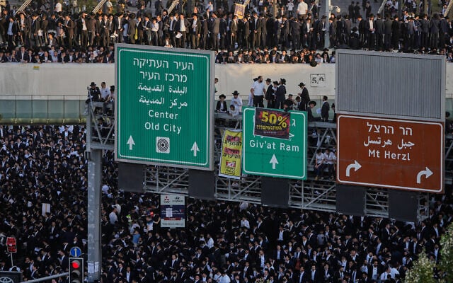 エルサレム市への入り口付近が黒服の群衆で埋め尽くされ、道路も路面電車も地下鉄も、一時封鎖状態の大混乱となった。