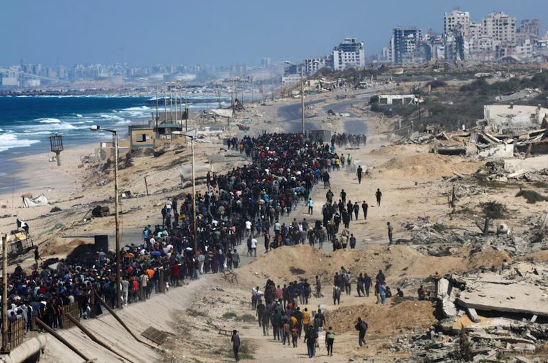 10月10日(金)正午に停戦が発動すると、その数時間後には、すでにガザ南部へ避難していた市民たちの大群衆が、ガザ北部に向かって戻っていく様子が伝えられている。