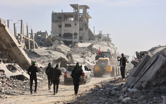 Armed Palestinian Hamas operatives pictured in Gaza City on November 2, 2025. (Omar AL-QATTAA / AFP)