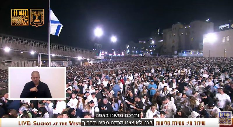 新年に先立つ9月19日(金)、エルサレムの嘆きの壁で行われたスリホットには、数万人とも見られる人々が、参加。トーラーの巻物を奉献し、ガザや各地で戦うイスラエル軍兵士の勝利と無事の帰還を祈った。